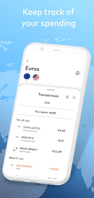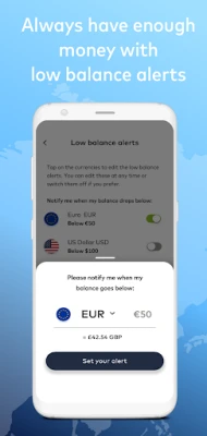 - Instantly transfer between currencies;