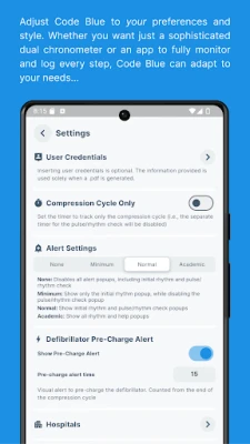 🔹 ⚙️Multiple Settings: whether you prefer just a simple CPR timer with dual chronometers or a fully functional app to maintain precise control over long and complex cardiac arrest occurrences that may last hours, Code Blue can be adjusted to fit your needs