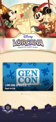 The Disney Lorcana TCG Companion app includes useful features like: - A comprehensive visual card catalog that provides essential information, with card renders that respond to your movement to give you a better look at the gorgeous foil treatments. - A collection tracker to help you organize your collection . - A built-in lore counter to enhance gameplay. - How-to-play guides that walk you through the game step-by-step . - Alerts for the latest news and articles, so you can stay up to date on all things Lorcana.