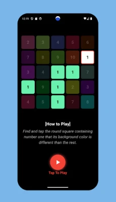 Key Features: Fast-Paced Gameplay: Race against the clock to find the odd tile. Multiple Levels: Increasing difficulty as you progress. Test Your Skills: Sharpen your focus, improve your reaction time, and train your brain. Simple and Fun: Easy to pick up but challenging to master.