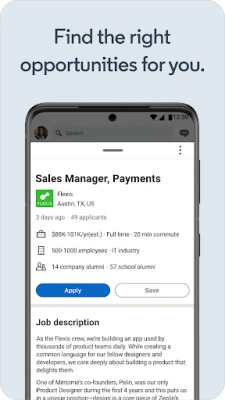 Find your next workplace and grow your professional network, one connection at a time. Show recruiters your experience when you build your resume before you start your job search. Get business insights before you apply for jobs, including salary, job responsibilities, or company news. Use your resume or professional profile to quickly and safely apply for the right position for you.