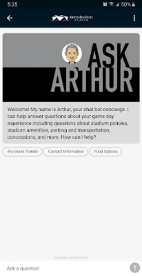• Be sure to ask our 24/7 mobile concierge, Arthur, any questions you have about Mercedes-Benz Stadium