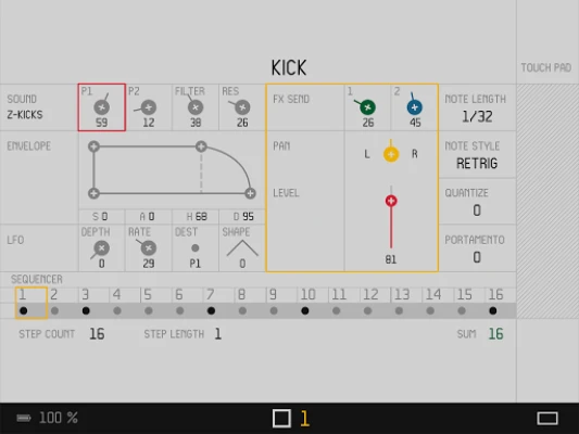 The app adds another dimension to your interaction with the OP–Z. Unlocking multi-touch features, you can adjust multiple mixer sliders at once or use the smooth touch pad to adjust effects or filters.