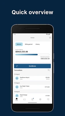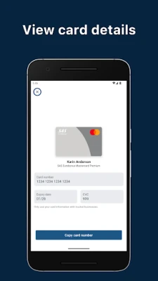 A tool for smarter handling of everyday life: • Get notifications of important events, purchases or if you have reached your spending limit. • Pause and unpause your card anytime • Block and order a new card if it has been lost or stolen. • Choose and view your PIN code. • With "Installment payment" you can quickly see what a larger purchase costs to split up in several months if you use your SAS EuroBonus Mastercard as a means of payment.