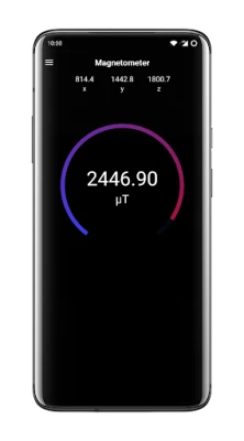 Measure the ambient magnetic field strength for all three physical axes (x, y, z) in microteslas (μT).