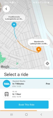With Shuttle - powered by Via, you can get on-demand or bus proposals, depending on what is most efficient for your specific request. An on-demand shuttle picks you up at a nearby pick up location and takes you to your destination. The bus lines pick up riders at specific bus stops.