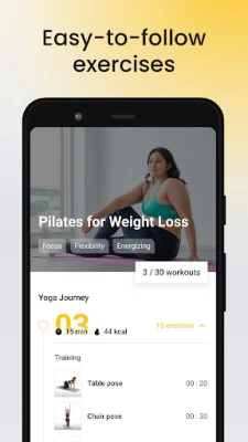 Start your daily workouts with Yoga-Go. Explore new poses of yoga for beginners, train with a 28-day Pilates challenge, try stretching with Chair Yoga for Seniors or Somatic Yoga workout, and build one more good habit into your life.