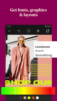 Save your brand kit (logo, colors and fonts) for seamless creation.