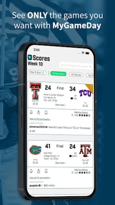 • Filter games by rank, kickoff time, conference, game rating, and more